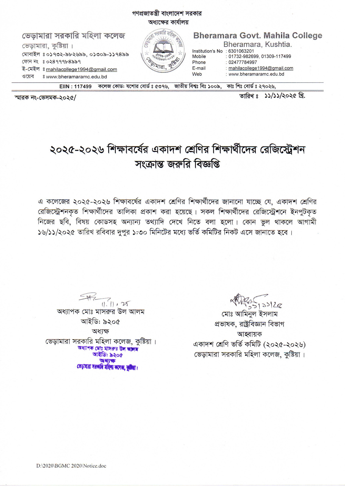 ভেড়ামারা সরকারি মহিলা কলেজে স্বাগতম